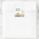 Easter bunny square shape sticker is shown with a festive Easter Bunny print with a Happy Easter text.