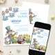 Hop on over for a delightful Easter Tea Party with this whimsical invitation! Featuring a charming illustration of the Easter bunny at a Mad Hatter / March Hare style tea party. The design includes playful cupcakes, colorful Easter eggs nestled in a bird's nest, and blooming spring flowers, all set against a soft pink and green color palette. It's the ideal way to invite guests to a magical celebration, whether for a birthday or a special Easter event.