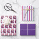 Introducing our colourful Pastel Easter Bunny Rabbit design.  Embrace the joy of the season with a playful bunny with a lavender tinge to his fur, surrounded by a burst of colours-lush purples, pinks, and hints of orange watercolor flowers. This is the perfect design for adding a festive and whimsical touch to your Easter. This set of 3 coordinating Easter wrapping papers feature our exclusive pastel Easter Bunny on one sheet, a coordinating pink and purple stripe on another, and a solid matching purple on the 3rd sheet.