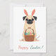 Bright but soft colours create an atmosphere of joy and love, and the charming pug is sure to bring a smile to the recipient's face. Write your heartfelt greetings inside and make this holiday even more special! Perfect for friends and family, this card will be a wonderful addition to your Easter greetings.