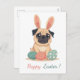Bright but soft colours create an atmosphere of joy and love, and the charming pug is sure to bring a smile to the recipient's face. Write your heartfelt greetings inside and make this holiday even more special! Perfect for friends and family, this card will be a wonderful addition to your Easter greetings.