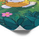 Easter cartoon bunnies hiding eggs in a garden poster
