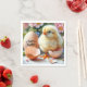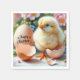A fluffy yellow chick hatched from an egg surrounded by vivid spring flowers and festive Easter decorations. This charming scene celebrates the joy and renewal of the Easter season.