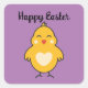 Cute, picture of a yellow chick with a white heart on it's chest, is featured on this Easter square sticker. With a purple background and message, "Happy Easter", this sticker can be used for that special mailing, decorating, scrap booking and more!
