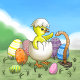 The newly hatched chicken wishes the earthworm a happy Easter.