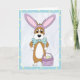 Okay, who dressed up the corgi as an Easter bunny?! Oh, that's right - WE did! This cartoon Pembroke Welsh Corgi doesn't look the least bit happy about his purple bunny ears, big polka dotted bow tie and basket of colourful Easter eggs. The inside message says, "Happy Easter!" Funny corgi Easter card for dog lovers.
