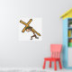 A Christian stick figure wearing a crown of thorns carries the Crucifix. Design is intended to thoughtfully show the message of the Easter Cross.