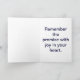 This card has my depiction of a cross in the clouds, backlit by a ray of sun, in a sky blue frame with the text "For God so loved the world" edit inside text which says, "Remember the promise with joy in your heart".