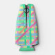 This bottle cooler has an Easter design of vertical, horizontal, and diagonal lines crossing the design in pale Easter colours.