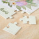 Cute Easter jigsaw puzzle with a bunny with a purple egg, pink and purple flowers. Easily personalise the text. - Kate Eden Art.