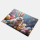 Doormat is shown with a cute easter bunny print.