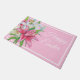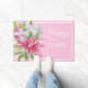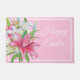 Doormat shown with a light pink colour background and white border with a Happy Easter text and a lovely flower print.