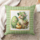 Easter Ducks Easter Egg & Flowers on Green Gingham Cushion