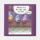 Three female Easter eggs sitting at a bar checking out the competition. Two plain coloured eggs are looking at the third one who is decorated with bright colours. Blue egg says, "Look at the dye job on her." Pink egg says, "Tramp!"
