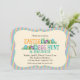 This bracket shaped invitations features and graphic of the colourful Easter eggs hidden in blades of green grass with the text: Easter Egg Hunt & Brunch. The background is a trendy stripe pattern using orange, teal and purple. Customisable text allows you to add your details.