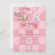 For your Easter Celebration party, choose this Easter Egg Hunt Brunch Cute Pink Watercolor Bunny Invitation template, with cute and trendy hand drawn doodles on a two-tone pink chequerboard background