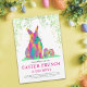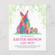 Celebrate the joy of Easter and new beginnings with a playful springtime scavenger hunt led by the Easter bunny. This colourful watercolor cute psychedelic bunny and eggs Easter brunch and egg hunt budget invitation is a fun and cheerful way to invite friends and family to your seasonal celebration. The design features an adorable, vibrant artsy rabbit surrounded by bright, multicolored Easter eggs in a whimsical, contemporary style.
