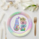 A Rainbow Pastel Paper Dinner Plate Of A Cute Gnome Looking Forward To The Easter Egg Hunt.