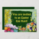 Spring scene with Easter bunnies & eggs on a green meadow with flowers. Remember to insert your own text!