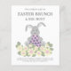Modern Easter brunch and egg hunt cute bunny daisy floral budget invitation, perfect for a spring garden party or Easter celebration. Features a cute Easter bunny holding a large pink and purple spotted Easter egg, nestled among spring foliage and cheerful daisies. Elegant purple handwriting script paired with modern handwritten typography creates a fresh, contemporary look. Easy-to-personalise templates let you add your family name and all your essential event details. An adorable, simple modern design ideal for Easter brunches, egg hunts, and spring gatherings. Original artwork by artist Catherine Sweetman.