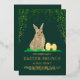 Spread elegant springtime cheer with this modern gold-foil look watercolor Easter bunny egg hunt and brunch invitation. The design features an adorable hand-painted bunny rabbit and shimmering gold Easter eggs surrounded by fresh green foliage for a stylish, contemporary spring aesthetic perfect for a garden celebration.