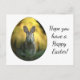 Cute picture of a bunny on an egg with message, "Hope you have a Happy Easter!", is featured on this holiday postcard. A cute way to send Easter greetings to family and friends!