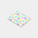This Post-It notepad has a Easter design of eggs in purple, yellow, green, blue, and pink scattered about with their outlines.