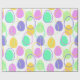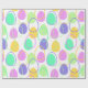 This wrapping paper has a Easter design of eggs in purple, yellow, green, blue, and pink scattered about with their outlines.