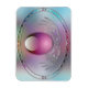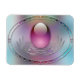 A pastel blue, lavender, and pink design with a translucent pink egg in a silver filigree setting, circled by a light silver oval frame set with four more smooth gems like colourful eggs.