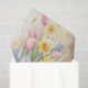 This charming tissue paper design showcases a delightful springtime scene. It features a cute cat wearing a springtime hat, alongside a basket overflowing with colorful Easter eggs and vibrant spring tulip and daffodil flowers in the background. The artwork is a watercolor-inspired illustration, created using AI technology and designed by Susang6.