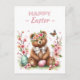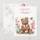 Easter postcard featuring a bear with cherry blossoms and Easter eggs. Customisable.