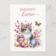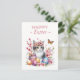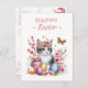 Easter postcard featuring a kitten with cherry blossoms and Easter eggs. Customisable.
