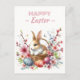 Easter Eggs Watercolor Rabbit Cherry Blossoms Postcard