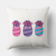 An illustration of three easter eggs with flowers and ribbon in stripe colours of pink, magenta and violet. This design is a gift idea for surprise gift lovers, easter egg hunter lovers and pastel colour lovers.