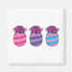 An illustration of three easter eggs with flowers and ribbon in stripe colours of pink, magenta and violet. This design is a gift idea for surprise gift lovers, easter egg hunter lovers and pastel colour lovers.