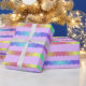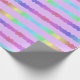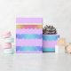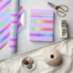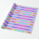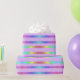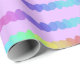 Wrapping paper decorated with rows of brightly coloured Easter eggs on a lavender background.