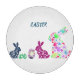 "EASTER" FLOWERED BUNNY RABBITS GLASS CUTTING BOARD WITH A CHICK & COLORED EGGS.
