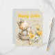 Easter greeting card decorated with flowers, ribbons and eggs.