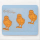 A vintage / antique Happy Easter postcard with three fuzzy yellow felt chicks all in a row. Background in blue. Happy Easter!