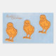 A vintage / antique Happy Easter postcard with three fuzzy yellow felt chicks all in a row. Background in blue. Happy Easter!