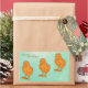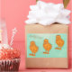 A vintage / antique Happy Easter postcard with three fuzzy yellow felt chicks all in a row. Background in green. Happy Easter!