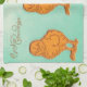 Easter Greetings Chicks Green Tea Towel