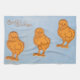 A vintage / antique Happy Easter postcard with three fuzzy yellow felt chicks all in a row. Background in blue. Happy Easter!