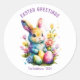 Easter Greetings Painted Bunny Custom Classic Round Sticker