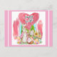 A Cute Brushstroke Easter Greeting Postcard In Pink With Easter Rabbit And Basket Of Eggs