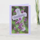 Classic vintage Easter card showing the cross entwined with violets. The card message inside and out is "Easter Greetings".