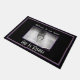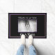 Doormat shown with a black background, purple and gold coloured borders surrounding an image of a holy bible's page with an image of a thorny crown forming a heart shape in the centre crease of the bible printed on in centre of doormat. He is Risen in large white text beneath the image. Atop are the words "Welcome to our home".