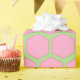 This wrapping paper has a design of a pale pink hexagons on a field of pale green.