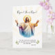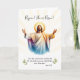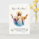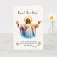 Celebrate the joy of Easter with this beautifully inspiring Christian card featuring Jesus as the risen Lord, His arms outstretched with soft golden rays shining from Him. A message of rejoicing is placed above Him, while a powerful scripture passage below offers a reminder of faith and eternal life. Inside, a heartfelt blessing shares the hope and love of Christ’s victory. This card is a perfect way to uplift and encourage loved ones this Easter season.