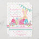 Celebrate Easter and a birthday too with this adorable invitation. The pastel, polka dot background features birthday flags, decorated eggs, spring flowers and of course a bunny.